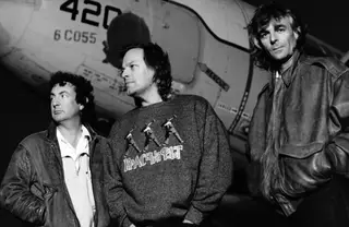 Pink Floyd em 1987: Nick Mason, David Gilmour, Richard Wright